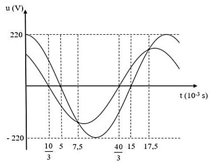 Độ lệch pha giữa hai điện áp: \(\Delta \varphi = \omega \Delta t\)