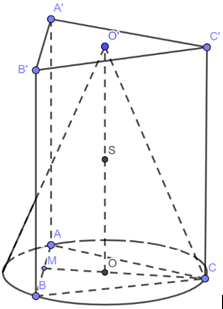 Gọi S là trung điểm của OO’. Suy ra S là tâm mặt cầu ngoại tiếp hình lăng trụ \(ABC.A'B'C'\).