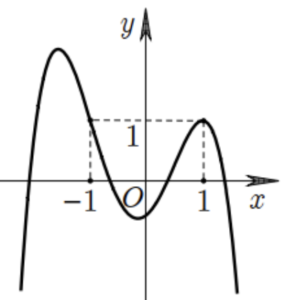 Cho hàm số đa thức bậc bốn \(y = f(x)\) có đồ thị như hình vẽ bên. Phương trình \(f(x) - 1 = 0\) có bao nhiêu nghiệm thực phân biệt