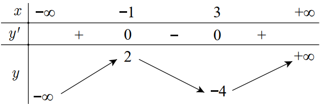 Cho hàm số \(y = f(x)\) xác định và liên tục trên khoảng \(( - \infty ; + \infty )\), có bảng biến thiên như hình vẽ: