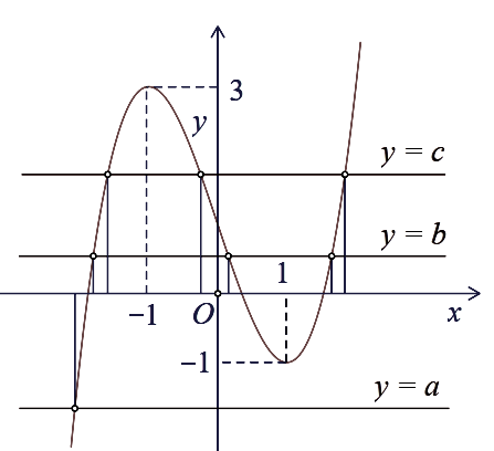 Cho hàm số bậc ba \(y = f\left( x \right)\) có đồ thị là đường cong như hình vẽ bên dưới.Số