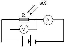 Trong sơ đồ ở hình bên: AS là ánh sáng kích thích gây ra được hiện tượng quang điện với quang trở R; A là ampe kế; V là vôn kế. Số chỉ của ampe kế và vôn kế sẽ thay đổi thế nào nếu tắt chùm sáng AS?