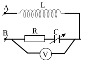 Đặt một điện áp xoay chiều có tần số 50Hz và giá trị hiệu dụng 20V vào hai đầu cuộn sơ cấp của một máy biến áp lí tưởng có tổng số vòng dây của cuộn sơ cấp và cuộn thứ cấp là 3600 vòng. Nối hai đầu cuộn thứ cấp với đoạn mạch AB (hình vẽ); trong đó điện trở R có giá trị không đổi, cuộn cảm thuần có độ tự cảm 0,3H và tụ điện có điện dung C thay đổi được. Điều chỉnh điện dung C đến giá trị \(C = \dfrac{{{{10}^{ - 3}}}}{{5{\pi ^2}}}F\)thì vôn kế (lý tưởng) chỉ giá trị cực đại và bằng \(40\sqrt {10} V.\) Số vòng dây của cuộn sơ cấp là