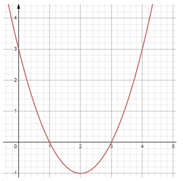 Cho hàm số bậc hai \(f(x) = {x^2} - 4x + 3\) có đồ thị như hình vẽ sau: