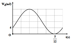 Một chất điểm có khối lượng 320 g dao động điều hòa dọc theo trục Ox. Biết đồ thị biểu diễn sự phụ thuộc của động năng theo thời gian của chất điểm như hình vẽ và tại thời điểm ban đầu (t = 0) chất điểm đang chuyển động ngược chiều dương. Lấy \({\pi ^2} = 10\). Phương trình dao động của chất điểm là