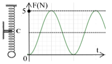 Một con lắc lò xo treo thẳng đứng tại nơi có g = 10m/s2. Quả nặng có khối lượng 200g. Con lắc đang dao động điều hòa theo phương thẳng đứng thì lực đẩy cực đại mà lò xo tác dụng lên giá treo có độ lớn bằng F0. Khi quả nặng ở vị trí thấp nhất thì người ta giữ cố định điểm chính giữa của lò xo bằng kẹp nhỏ C. Biết độ cứng của các lò xo tỷ lệ nghịch với chiều dài tự nhiên của nó, bỏ qua mọi lực cản. Sau khi giữ, hợp lực mà lò xo tác dụng lên kẹp C phụ thuộc thời gian như đồ thị hình bên. F0 gần nhất với giá trị nào sau đây?