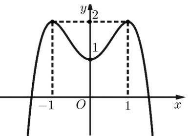 Cho hàm số \(y = a{x^4} + b{x^2} + c\) có đồ thị là đường cong trong hình bên dưới