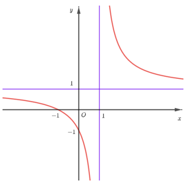 Cho hàm số \(y = \dfrac{{ax + b}}{{cx + d}}\) có đồ thị là đường cong trong hình vẽ bên. Tọa độ giao điểm của đồ thị hàm số đã cho và trục hoành là