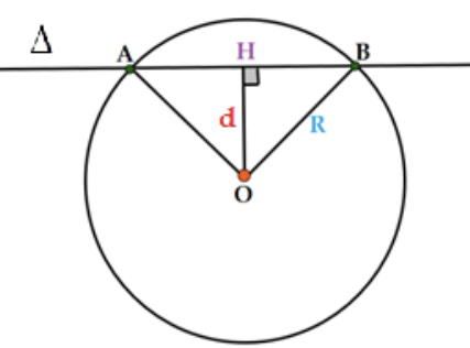 Cho đường thẳng \(\Delta \) cắt mặt cầu \(S(O;R)\). Gọi d là khoảng cách từ \(O\) đến \(\Delta