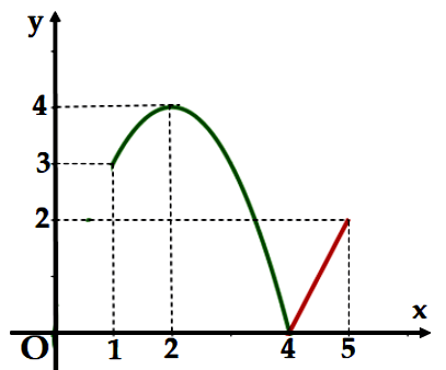 Cho hàm số \(y = f(x)\) liên tục trên đoạn [1;5] và có đồ thị như hình vẽ.