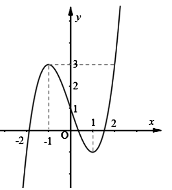Cho hàm số bậc ba \(y = f(x)\) có đồ thị là đường cong trong hình vẽ dưới đây:Có bao nhiêu