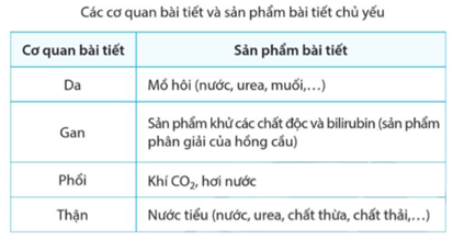 Trong các cơ quan dưới đây đâu là cơ qua tham gia vào quá trình bài tiết của cơ thể và sản phẩm thải của cơ quan đó là gì?