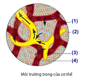 Gọi tên lần lượt theo thứ tự từ (1) đến (4) các thành phần của môi trường trong cơ thể: