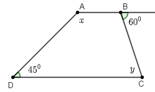 Cho hình hang ABCD (AB //CD) như hình bên, giá trị các góc x, y