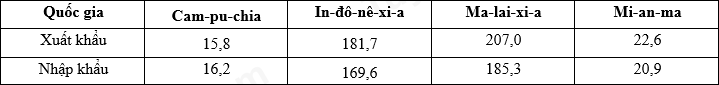 Cho bảng số liệu: XUẤT KHẨU, NHẬP KHÂU HÀNG HÓA VÀ DỊCH VỤ CỦA MỘT SỐ QUỐC GIA NĂM