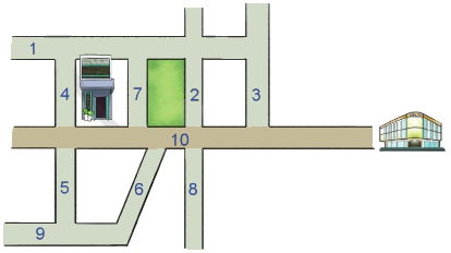 Hãy chỉ ra trong sơ đồ sau những con đường vuông góc với đường số 1, những con đường song song với đường số 1.