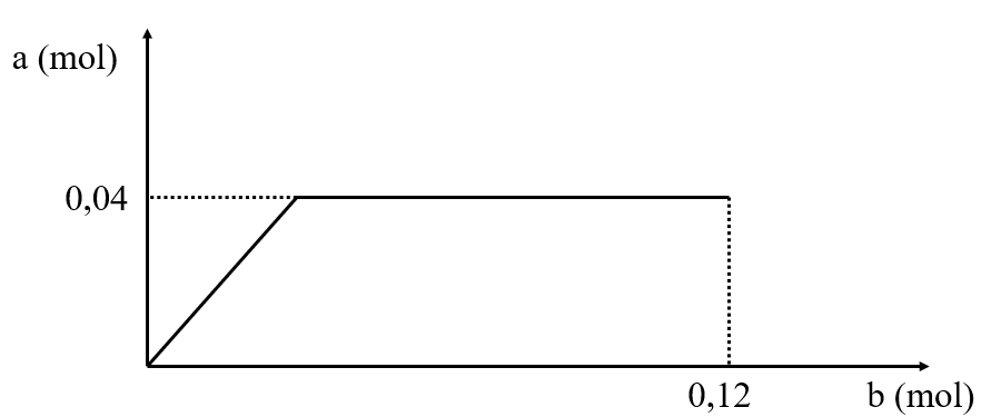 Cho m gam hỗn hợp X (gồm Na, Na2O, Ba và BaO) vào H2O dư, a (mol) thu được dung dịch Y và 0,06 mol H2. Sục từ từ đến hết 0,12 mol CO2 vào Y, thu được dung dịch Z và kết tủa BaCO3. Sự phụ thuộc của số mol kết tủa BaCO3 (a mol) vào số mol CO2 (b mol) được biểu diễn theo đồ thị bên.