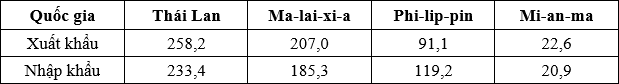 Cho bảng số liệu: XUẤT KHẨU, NHẬP KHẨU HÀNG HÓA VÀ DỊCH VỤ CỦA MỘT SỐ QUỐC GIA NĂM