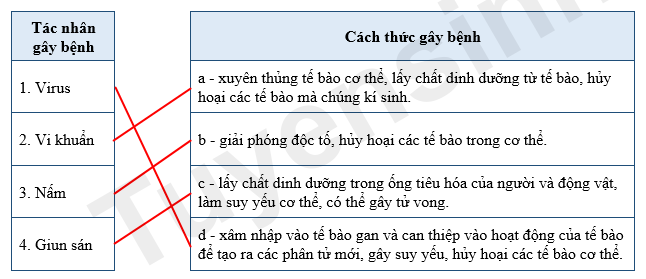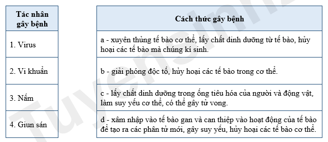 Hãy ghép đúng các tác nhân gây bệnh sinh học với cách thức gây bệnh