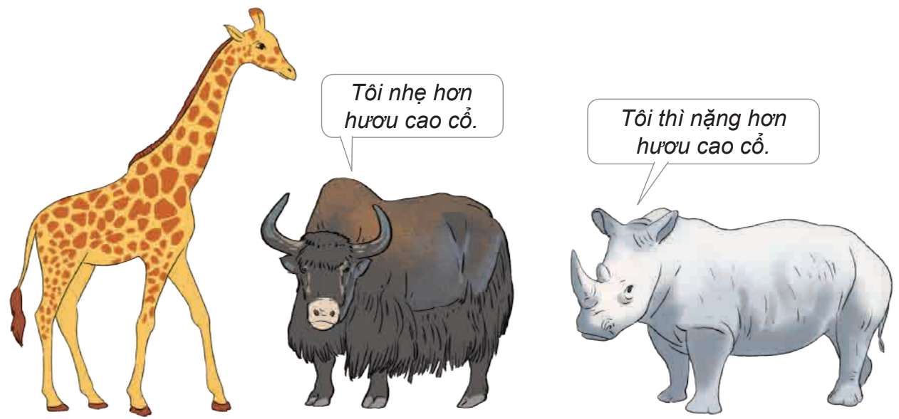 Đổi cân nặng của các con vật về cùng đơn vị là kg rồi so sánh.