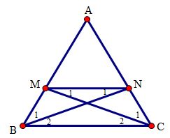 Cho tam giác ABC cân tại A. Trên các cạnh bên AB, AC lấy các điểm M, N sao cho BM = CN.