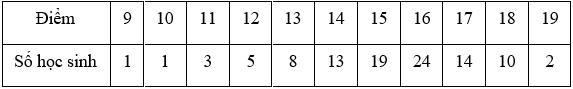 (1,0 điểm) Có 100 học sinh tham dự kì thi học sinh giỏi Toán (thang điểm 20). Kết quả cho trong