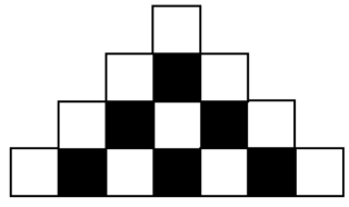 Một hình bậc thang được tạo thành từ các ô vuông đen và trắng xen kẽ trong mỗi hàng. Hàng 1
