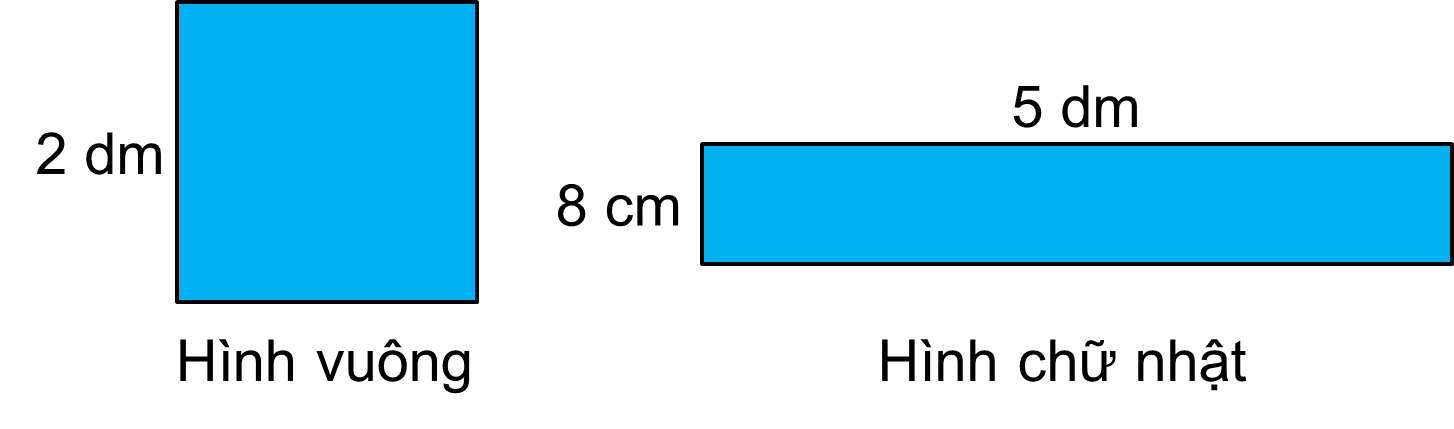 Diện tích hình chữ nhật bằng chiều dài nhân với chiều rộng. (cùng đơn vị đo)