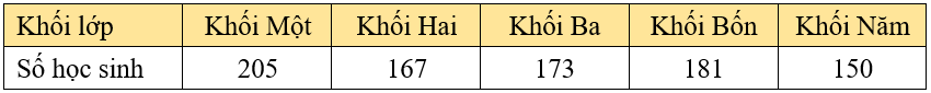 Số học sinh ở các khối lớp của trường tiểu học Ngọc Vân như sau: