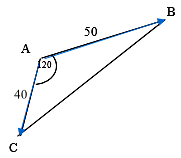 Hai chiếc tàu thủy cùng xuất phát từ một vị trí A, đi thẳng theo hai hướng tạo với nhau một góc \(120^o\). Tàu thứ nhất chạy với vận tốc 50km/h, tàu thứ hai chạy với vận tốc 40km/h. Hỏi sau 1 giờ hai tàu cách nhau bao nhiêu km?