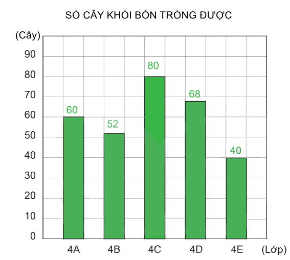 Biểu đồ dưới đây cho biết số cây khối 4 đã trồng được trong ngày lễ trồng cây: