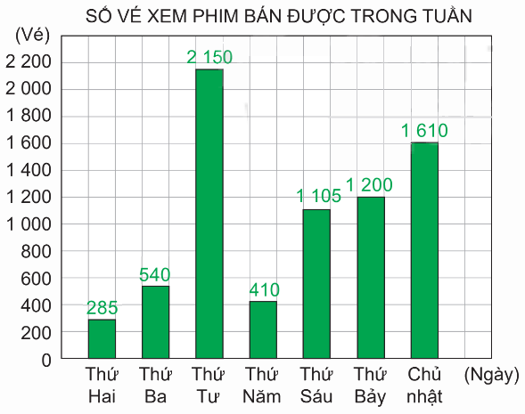 Biểu đồ sau cho biết số vé xem phim mà rạp chiếu phim Hòa Bình bán được trong một tuần.