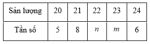 Tìm \(n\) biết sản lượng trung bình của 40 thửa ruộng là 22,1 tạ.