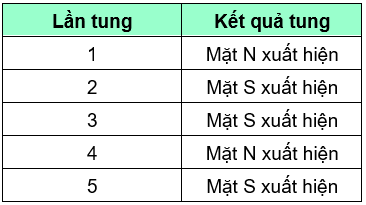 Tung đồng xu 5 lần liên tiếp, ta có kết quả như sau: