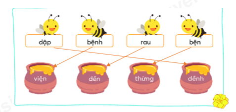 Chọn tiếng ở từng hũ mật phù hợp với tiếng ở mỗi con ong: