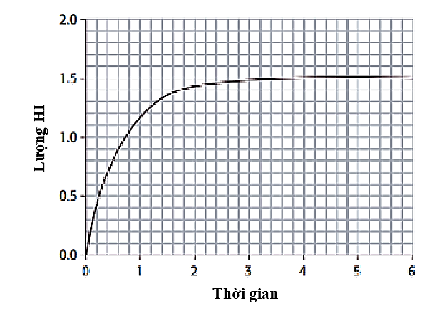 Quan sát biểu đồ, phát biểu nào không đúng về sự thay đổi của hydrogen iodide theo thời gian?