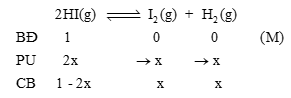 Khi đun nóng HI trong một bình kín, xảy ra phản ứng sau: 2HI(g) ⇌ H2(g) + I2 (g)