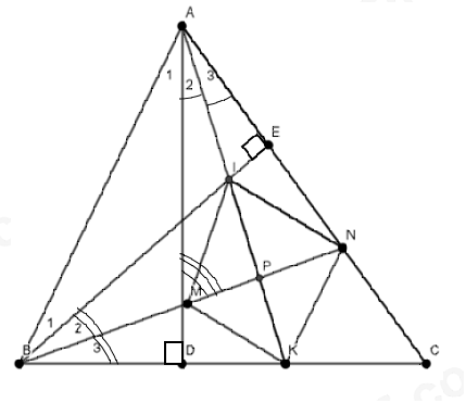 theo thứ tự tại I và K. Tia phân giác của góc EBC cắt AD, AC tại M và N.