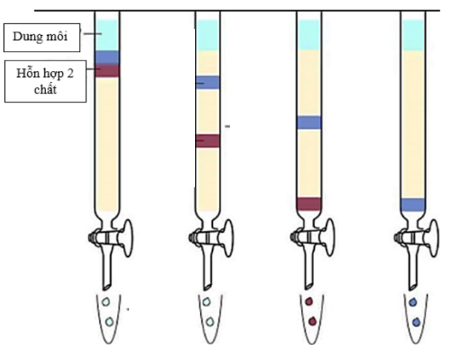 Cho sơ đồ phương pháp sắc kí trong phòng thí nghiệm: Nhận định nào dưới đây sai về phương