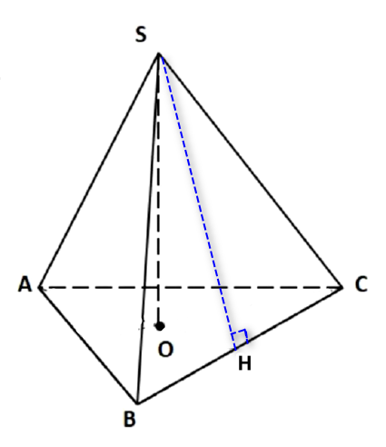 Cho hình chóp tam giác đều \(S.ABC\)như hình vẽ, có độ dài cạnh đáy 3 m, chiều cao của hình chóp 5m.