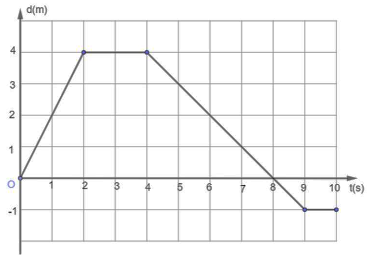 Cho đồ thị độ dịch chuyển – thời gian trong chuyển động thẳng của một xe ô tô đồ chơi điều khiển từ xa (hình vẽ). Kết luận nào dưới dây là sai.