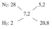 Sử dụng phương pháp đường chéo để xác định số mol các khí ban đầu.