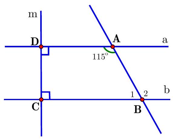 Cho hình vẽ dưới đây:a) Vẽ lại hình vẽ trên.b) Chứng minh \(a//b\).c) Cho \(\widehat {DAB} = {115^