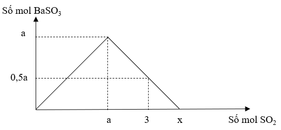 Sục khí SO2 vào dung dịch Ba(OH)2, phản ứng hoàn toàn. Kết quả thí nghiệm được biểu diễn trên đồ thị sau.