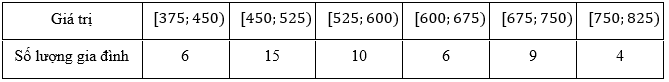 Cho mẫu số liệu vể số tiền điện phải trả của 50 gia đình trong một tháng ở một khu phố (đơn vị: nghìn đồng).
