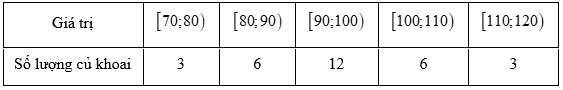 Cho mẫu số liệu về khối lượng của 30 củ khoai tây thu hoạch ở một nông trường (đơn vị: