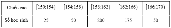 Đo chiều cao (tính bằng \({\rm{cm}}\) ) của 500 học sinh trong một trường THPT ta thu được kết
