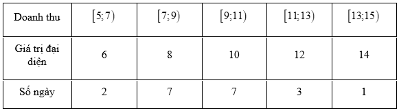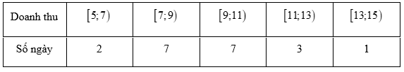 Doanh thu bán hàng trong 20 ngày được lựa chọn ngẫu nhiên của một của hàng được ghi lại ở bảng sau (đơn vị: triệu đồng):