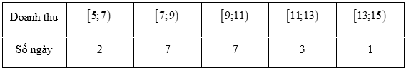 Doanh thu bán hàng trong 20 ngày được lựa chọn ngẫu nhiên của một của hàng được ghi lại ở bảng sau (đơn vị: triệu đồng):