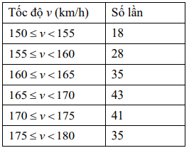 Ghi lại tốc độ bóng trong 200 lần giao bóng của một vận động viên môn quần vợt cho kết quả như bảng sau: